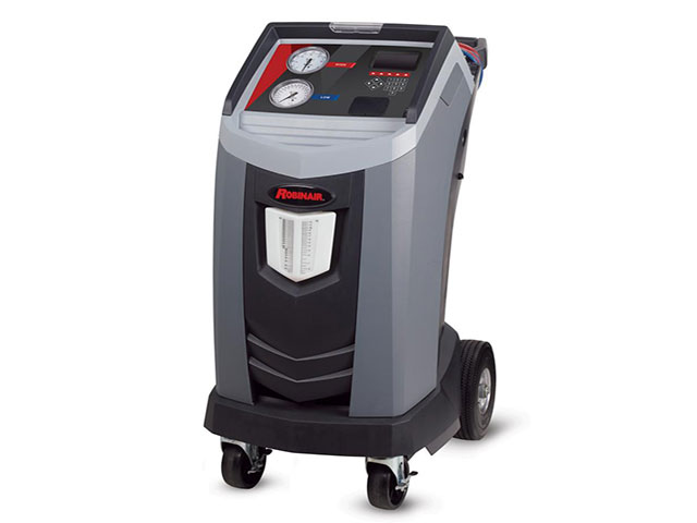 The Robinair 34788NI machines recover, recycle, evacuate, leak-test and recharge R-134a with improved 98.5% efficiency. The new design features a larger graphical display, automatic features including leak testing, automatic refrigerant refill and oil drain/inject - putting A/C lubricant back into the system.
